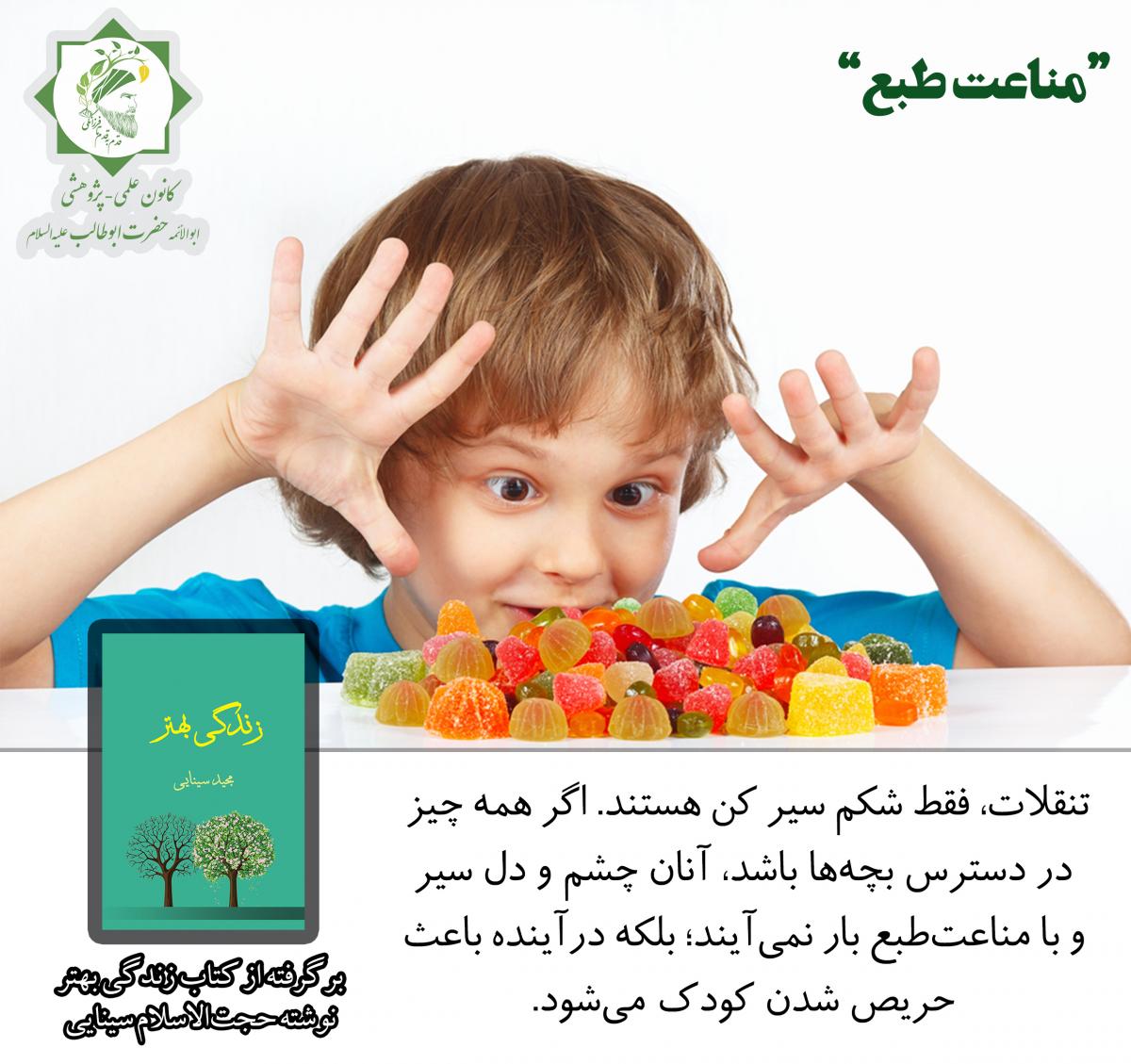 تنقلات، فقط شکم سیر کن هستند. اگر همه چیز در دسترس بچهها باشد، آنان چشم و دل سیر و با مناعتطبع بار نمیآیند. بلکه در آینده باعث حریص شدن کودک میشود.